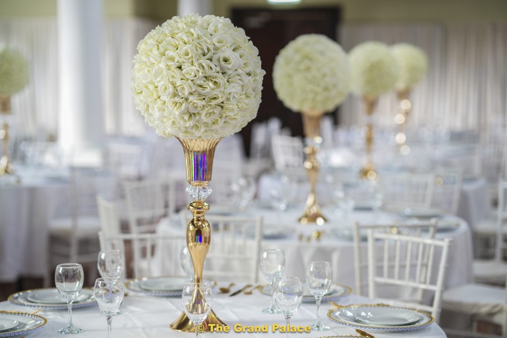 - Luxurious gold and ivory centrepieces